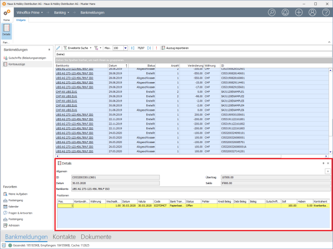 Details - Zeigt die Details zum ausgewählten Kontoauszug. |