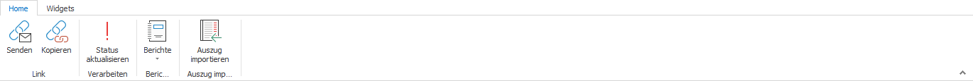 Der Ribbon für die Ansicht Kontoauszüge bietet den direkten Zugriff auf die Aktionen, welche für die in der Tabelle markierten Objekte ausgeführt werden können.