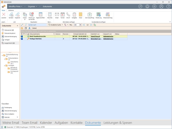 In der Ansicht Ausgecheckt werden jene Dokumente angezeigt, welche von einem Anwender zur Bearbeitung gesperrt (ausgecheckt) wurden. Diese Dokumente können nur vom jeweiligen Anwender bearbeitet werden.
