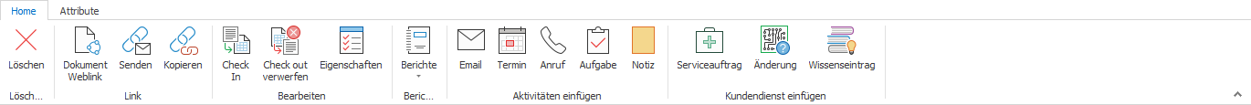 Hinweis Die ausführbaren Aktionen können je nach gewählter Sprache sowie nach Lizenz und Berechtigung von der hier gezeigten Darstellung abweichen. Abweichungen der Darstellung können auch dadurch entstehen, dass der Ribbon durch den Anwender personalisiert wurde. |