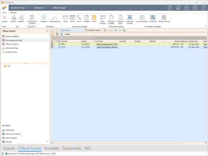 Bitte beachten Sie So lange sich eine Lieferantenrechnung in dieser Ansicht befindet, wird sie nicht im Bestand der offenen Kreditoren und somit auch nicht in der Offenen Postenliste der Kreditoren geführt. |