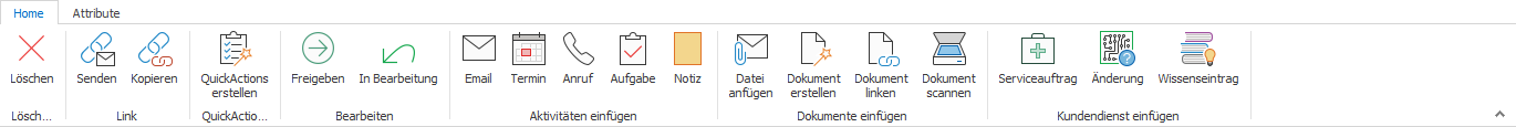 QuickActions erstellen - Öffnet ein Fenster für die Auswahl einer QuickAction, welche für den markierten Datensatz erstellt werden soll. |