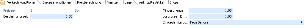 Hinweis Dieses Register ist sichtbar, wenn im Container Allgemein die Checkbox Einkauf aktiviert ist. |