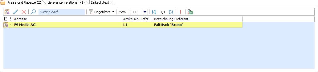 In diesem Subregister können lieferantenspezifischen Auszeichnung eines Artikels, sogenannte Lieferantenrelationen, verwaltet werden.