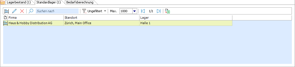 Im diesem Subregister kann pro Firma und pro Standort ein Standardlager bestimmt werden. Das hier eingetragene Lager wird immer dann von Winoffice Prime automatisch vorgeschlagen, wenn eine Lagerzuweisung notwendig (z.B. in Bestellungen, Wareneingängen, Aufträgen und Lieferscheinen) und die Bestimmung des Lagers nicht bereits auf Ebene des jeweiligen Dokuments erfolgt ist.