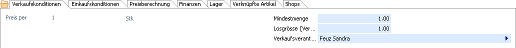 Hinweis Dieses Register ist sichtbar, wenn im Container Allgemein die Checkbox Verkauf aktiviert ist. |