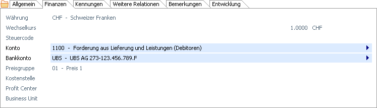 Der Inhalt der Felder Kostenstelle, Profit Center und Business Unit dient als Dimensionszuweisung für allfällige Finanzauswertungen.