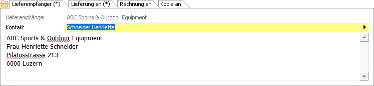 Bitte beachten Sie Ist in einer verwendeten Adresse ein vom eingetragenen Kontakt abweichender Standardempfänger vorgemerkt, so wird dieser Standardempfänger anstelle des Kontaktes ausgegeben. |