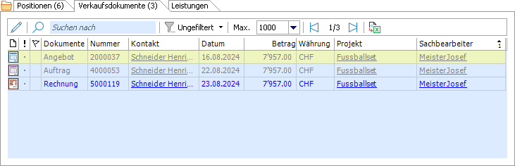 In diesem Register werden jene Verkaufsdokumente angezeigt, aus welchen der geöffnete Lieferschein erstellt wurde, bzw. welche aus dem geöffneten Lieferschein überführt wurden.