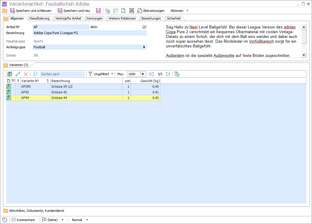 Ein Variantenartikel beschreibt eine Handelsware, welche in verschiedenen Ausführungen beschafft, verwaltet und verkauft wird.