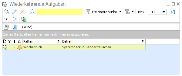Hier ist es möglich, Wiederkehrende Aufgaben zu erfassen und zu bearbeiten. |