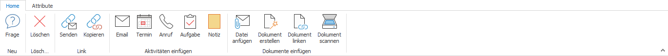 Der Ribbon für die Ansicht Fragen & Antworten bietet den direkten Zugriff auf die Aktionen, welche für die in der Tabelle markierten Objekte ausgeführt werden können.